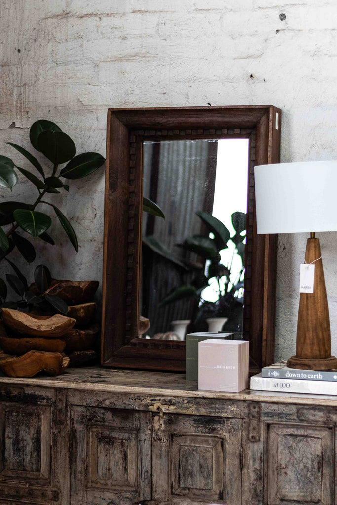 Designer tip: Hang or lean your mirror/art just above the table for a casual but curated effect.