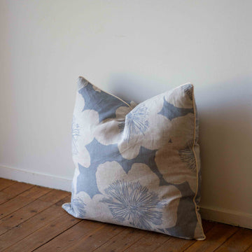 Soft and sculptural, this blue floral linen cushion offers quiet detail and subtle character. Jardin in Dove is an understated piece that layers easily with bold or patterned designs.