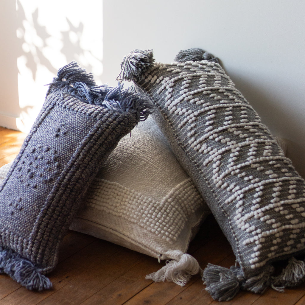 Each cushion is hand-finished by artisans in India using fabric remnants that would otherwise go to waste, giving new life to beautiful textiles and reducing environmental impact.