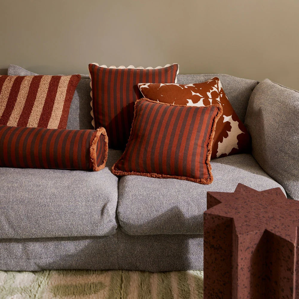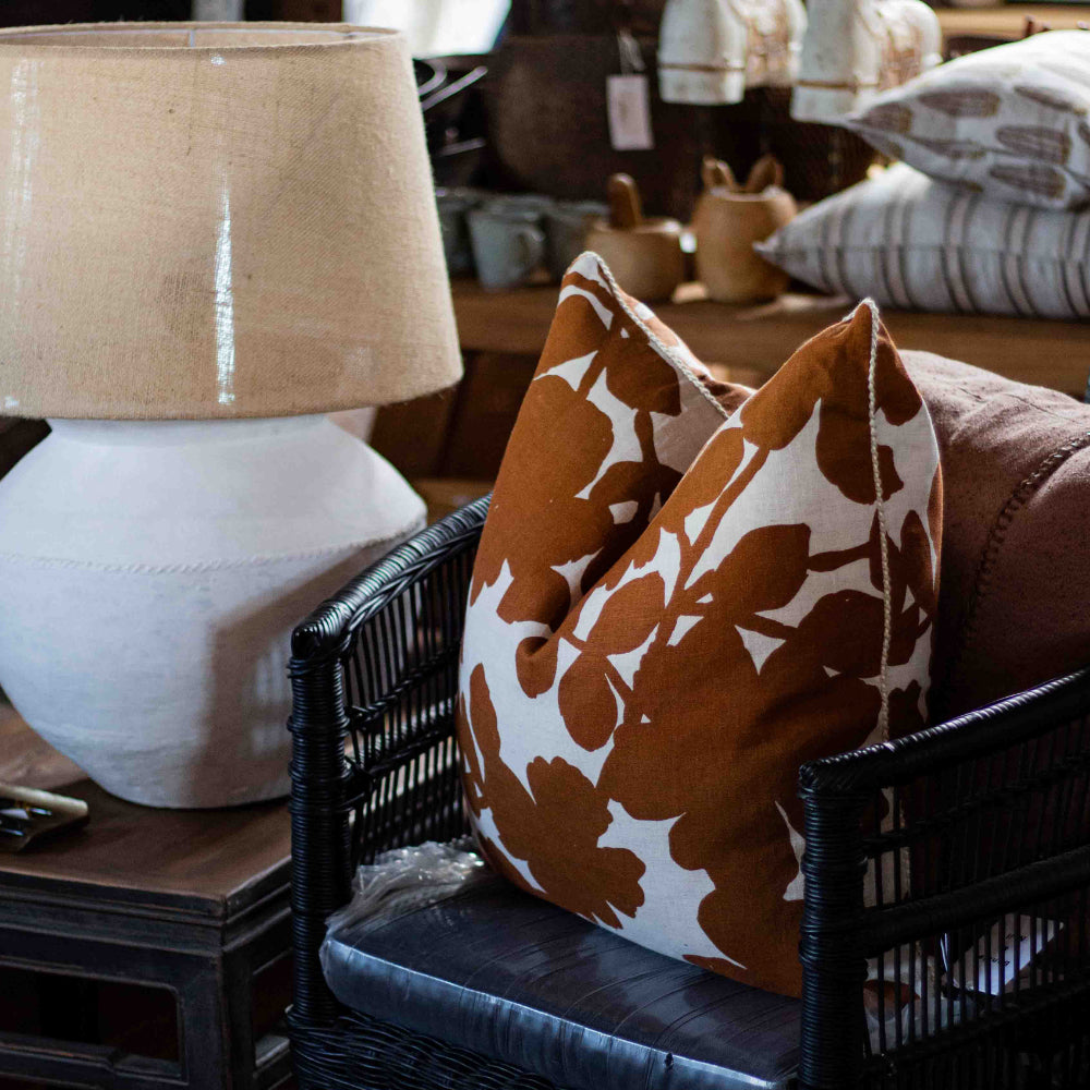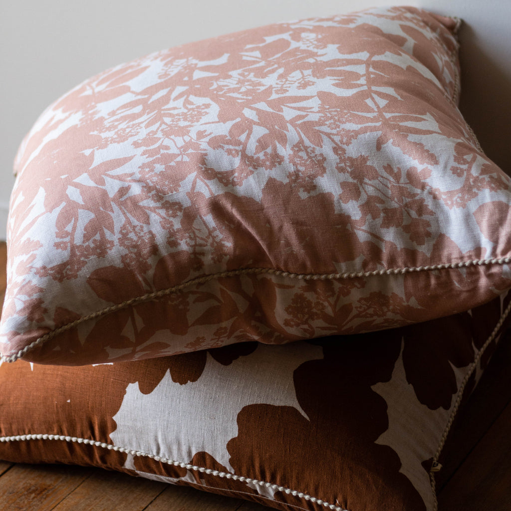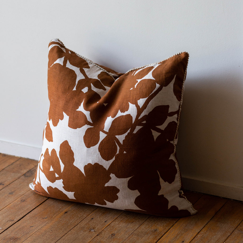 Celebrating the simplicity of oversized florals found on seventies wallpaper, our Carmine Cocoa Cushion brings together a contemporary look with a hint of nostalgia. Printed in a rich colour designed to work back with a range of palettes, this brown floral cushion is the perfect partner for bold stripes, abstract patterns and vibrant floral prints.