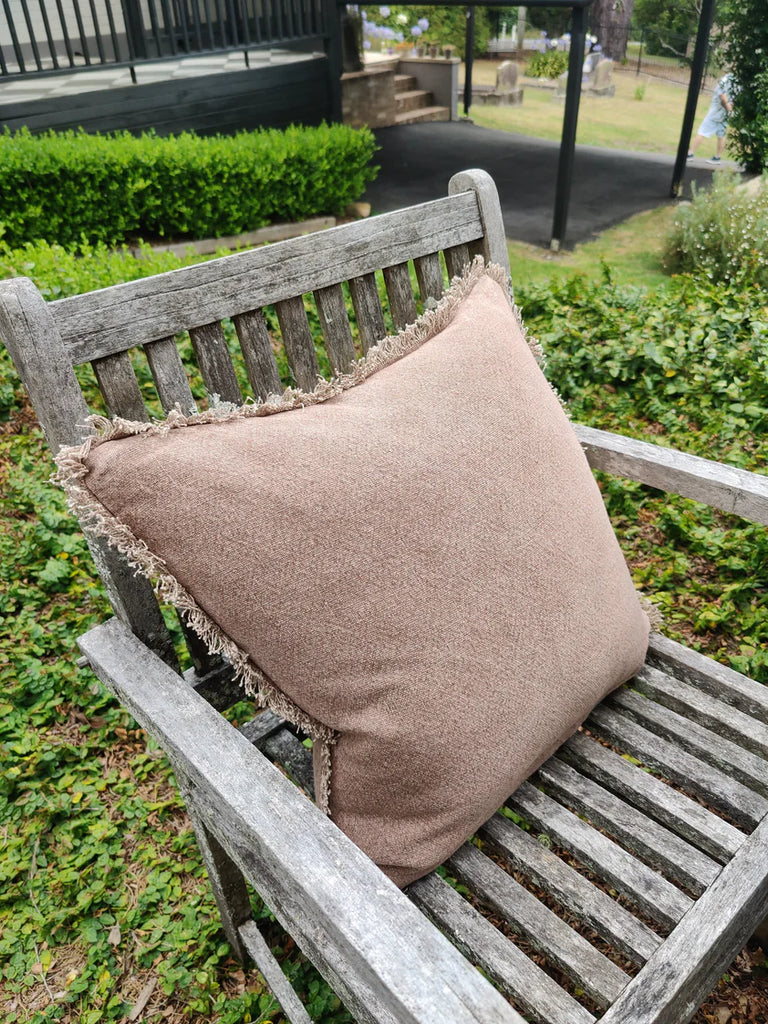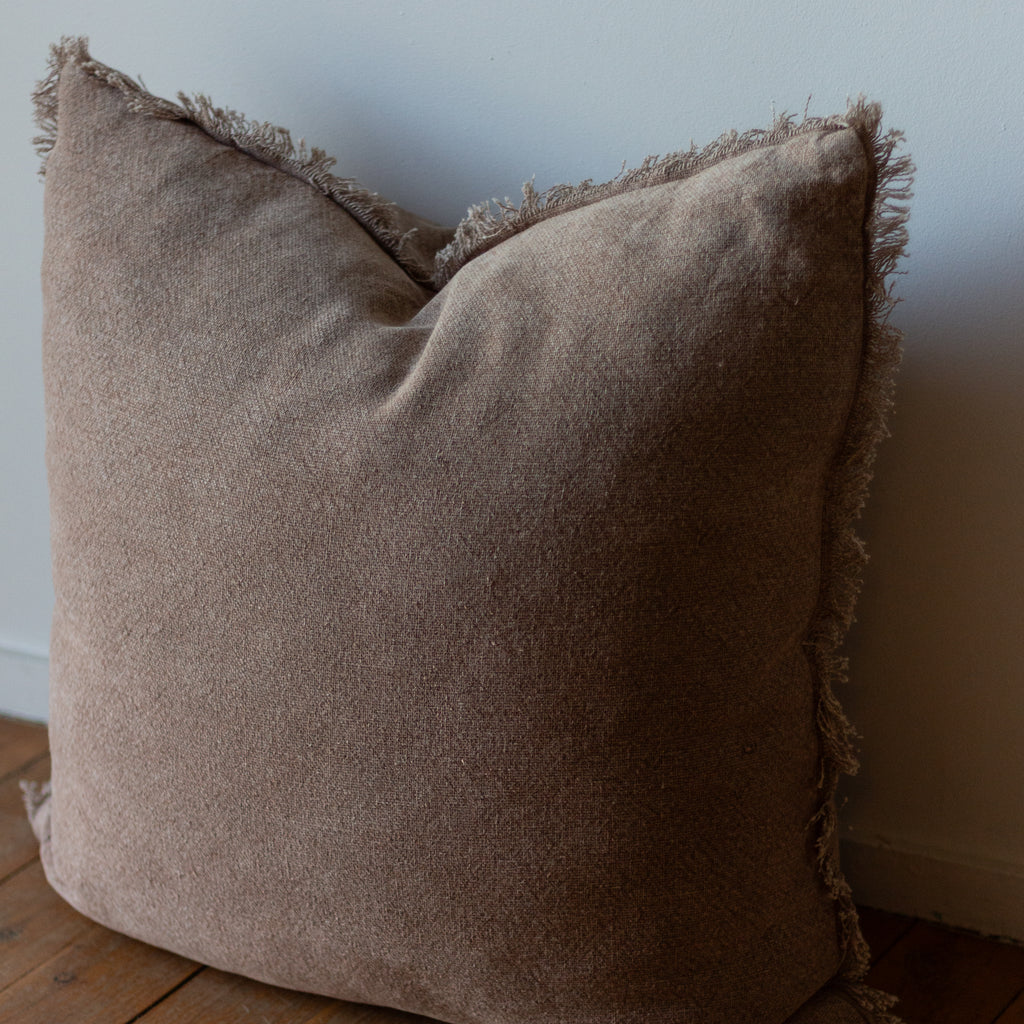 Macey and Moore's Matera Stonewashed Heavy Weight French Linen Cushion 60cm Square Feather Filled in Muted Clay