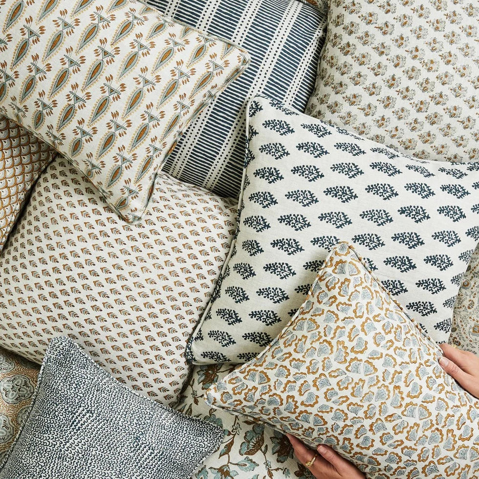 CARE INSTRUCTIONS: Cold machine wash separately on a delicate cycle with a very minimal amount of mild detergent. Do not tumble dry, soak or bleach. Iron at medium setting if necessary. For spot cleaning, gently dab the area with water (do not rub). Due to the nature of hand printed fabrics, variation in colour and pattern may occur. Keep out of direct sunlight to avoid excessive fading.