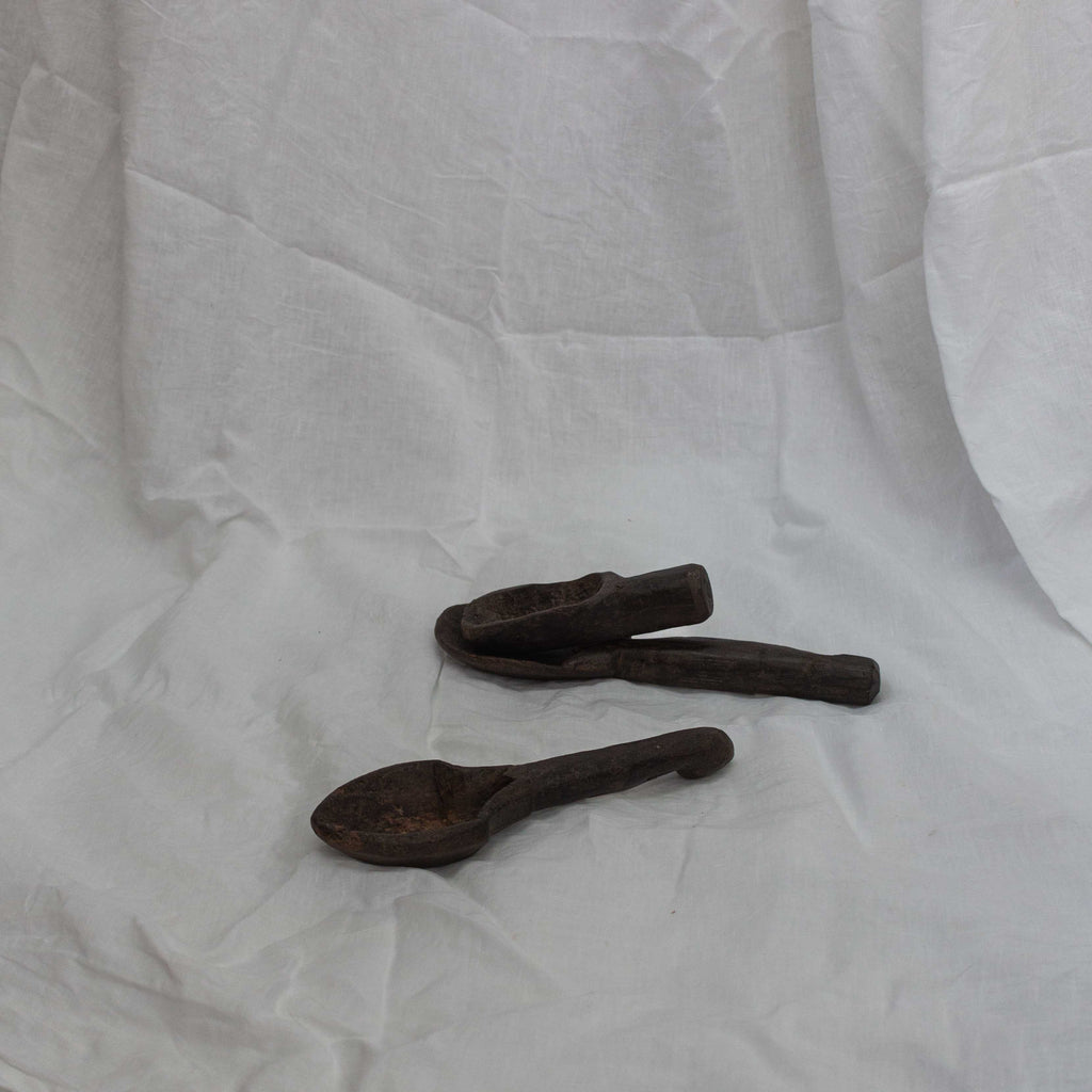 Each spoon is unique in shape and form, with irregular carving marks and a deep, dark patina that has developed over years of use. Their rustic appearance reflects both the simplicity and functionality of daily tribal life, while also standing as a piece of folk art.