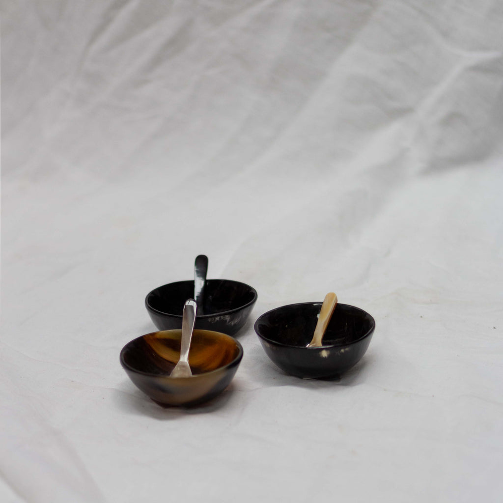 Small yet striking, the Natural Horn Salt & Pepper Bowl with Spoons adds depth and texture to your table setting. It is a piece that celebrates natural materials and timeless craftsmanship, offering both beauty and function in equal measure.