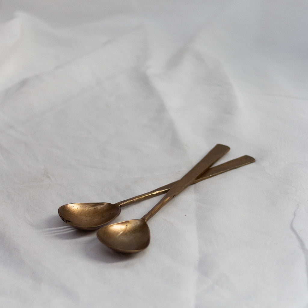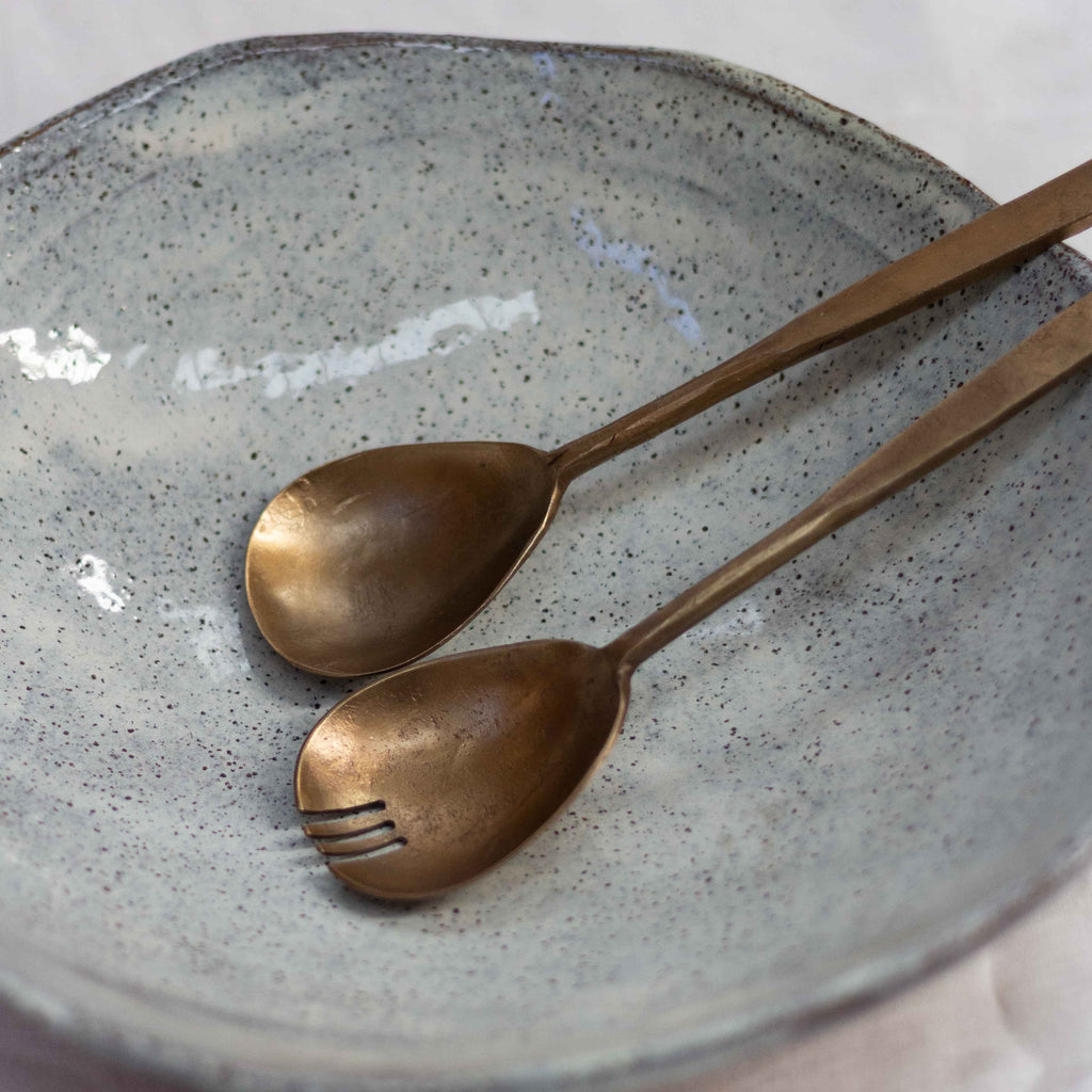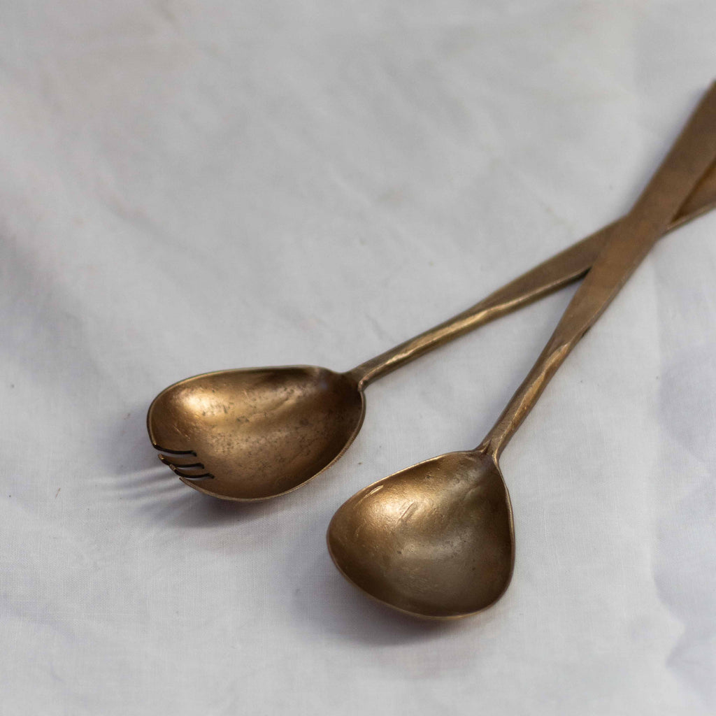 Elevate your table with the warm, understated elegance of our Hand-Forged Brass Salad Servers, a timeless pairing handcrafted by skilled Indian artisans using centuries-old metalworking techniques. Their raw, hammered texture and gently curved form lend an earthy sophistication to everyday dining and special occasions alike.