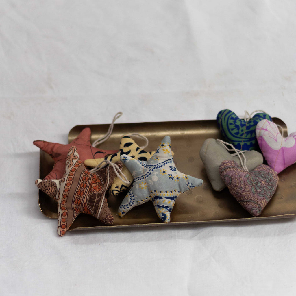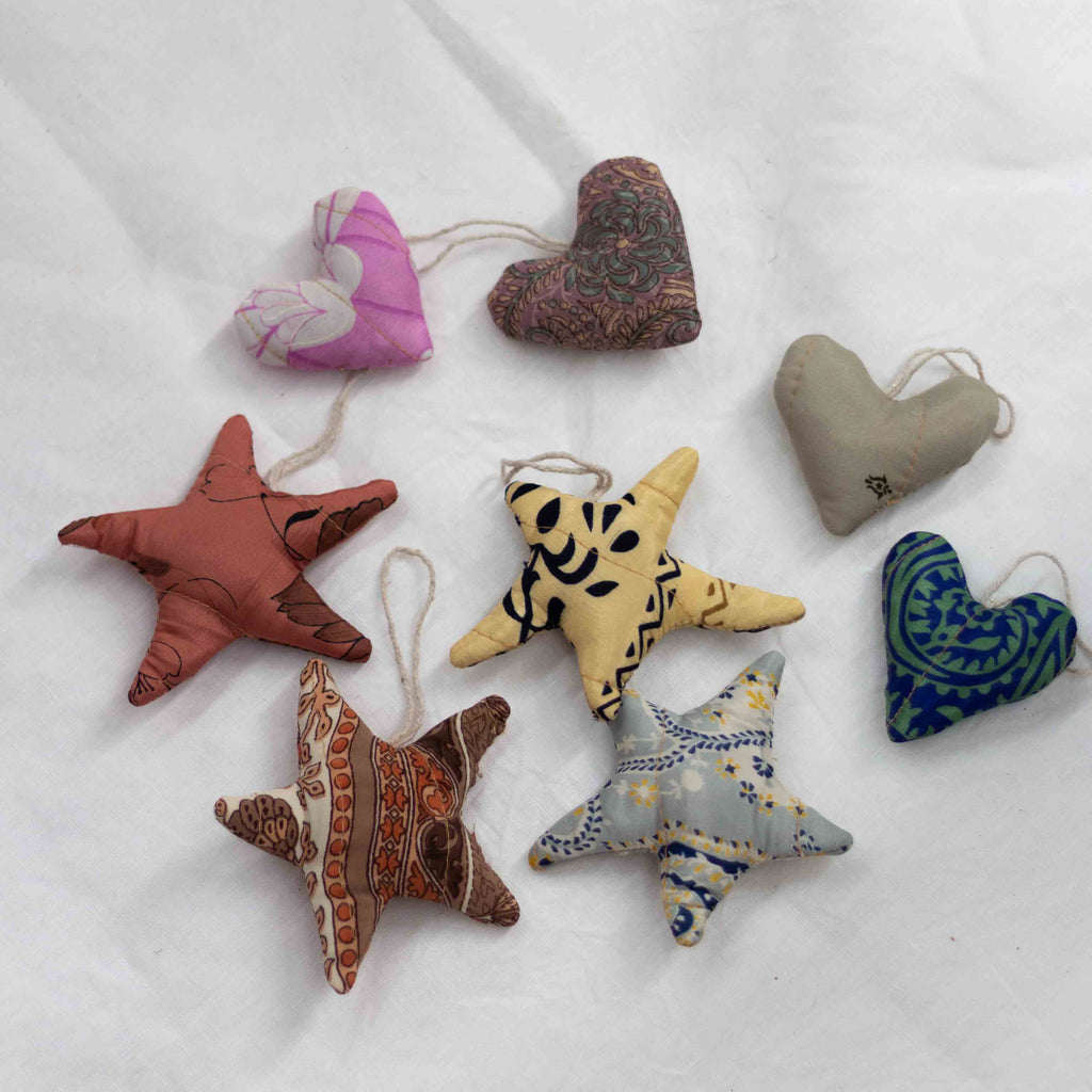 Each set includes 8 unique ornaments, crafted from authentic vintage sarees once worn by wealthy Indian women, lovingly repurposed to give these luxurious textiles a vibrant second life. Packed in a soft cotton drawstring bag, these decorations are not only rich in colour and texture, but also steeped in story.