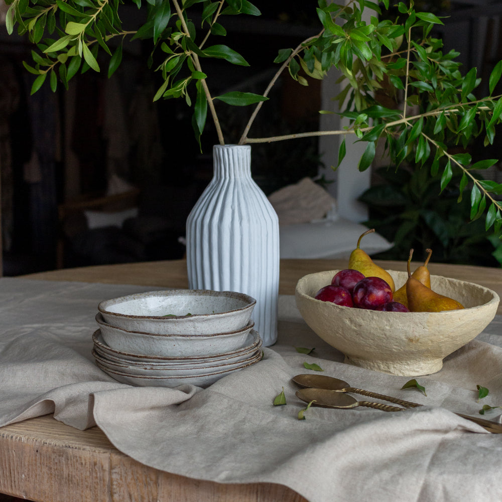 Generous in size and beautifully balanced, the Large Dish is perfect for presenting shared meals, fresh salads, or seasonal fruit. Its clean, angular form and softly textured glaze add an understated sophistication, making it a versatile piece for both everyday dining and special occasions.
