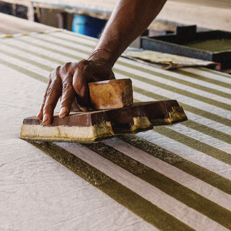Our Riviera collection is hand-block printed on pure linen, embodying true artisanal craftsmanship. Block printing not only ensures quality but also supports sustainable livelihoods for local craftspeople and their families. We take pride in supporting these communities, resulting in each piece being uniquely crafted with variations that enhance its individual character.