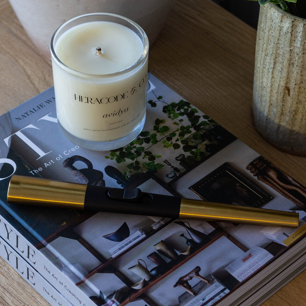 Our Rechargeable Electric Arc Lighter combines modern elegance with sustainable innovation. Crafted in a luxe brushed gold finish, this flameless lighter uses a powerful dual-arc ignition system to light candles, incense, or your fire pit with ease and will give you up to 150 uses with each charge.
