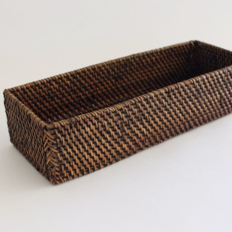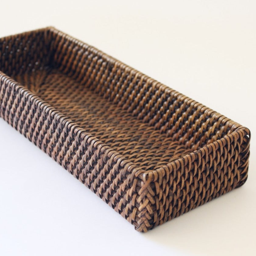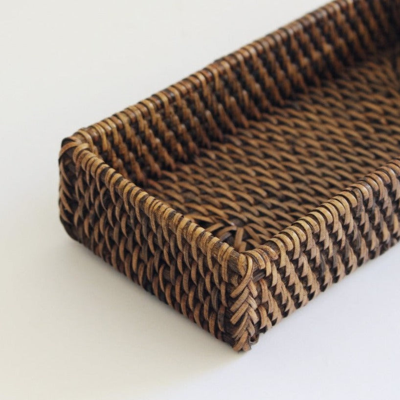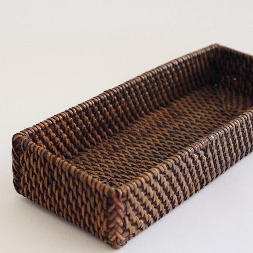 Rattan rectangular tray, ideal for holding bathroom products, jewellery and stationery. Available in 3 sizes